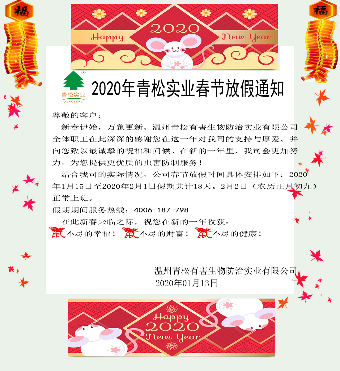 2020年青松實(shí)業(yè)春節(jié)放假通知