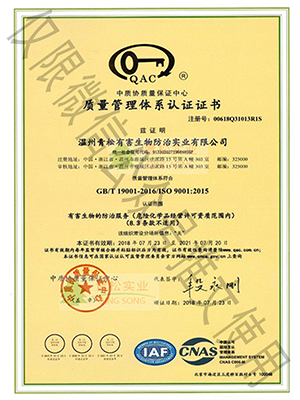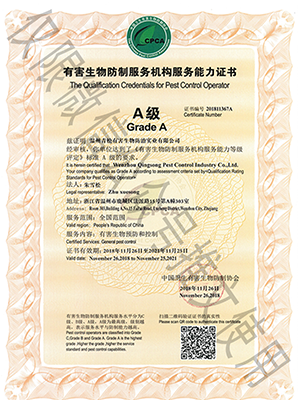國家級有害生物防制認證機構(gòu)A級證書/浙江省病媒生物防制服務(wù)機構(gòu)能力等級一級資質(zhì)