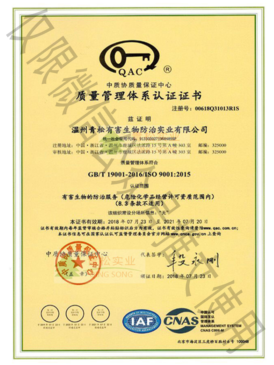 溫州青松有害生物防治實(shí)業(yè)有限公司