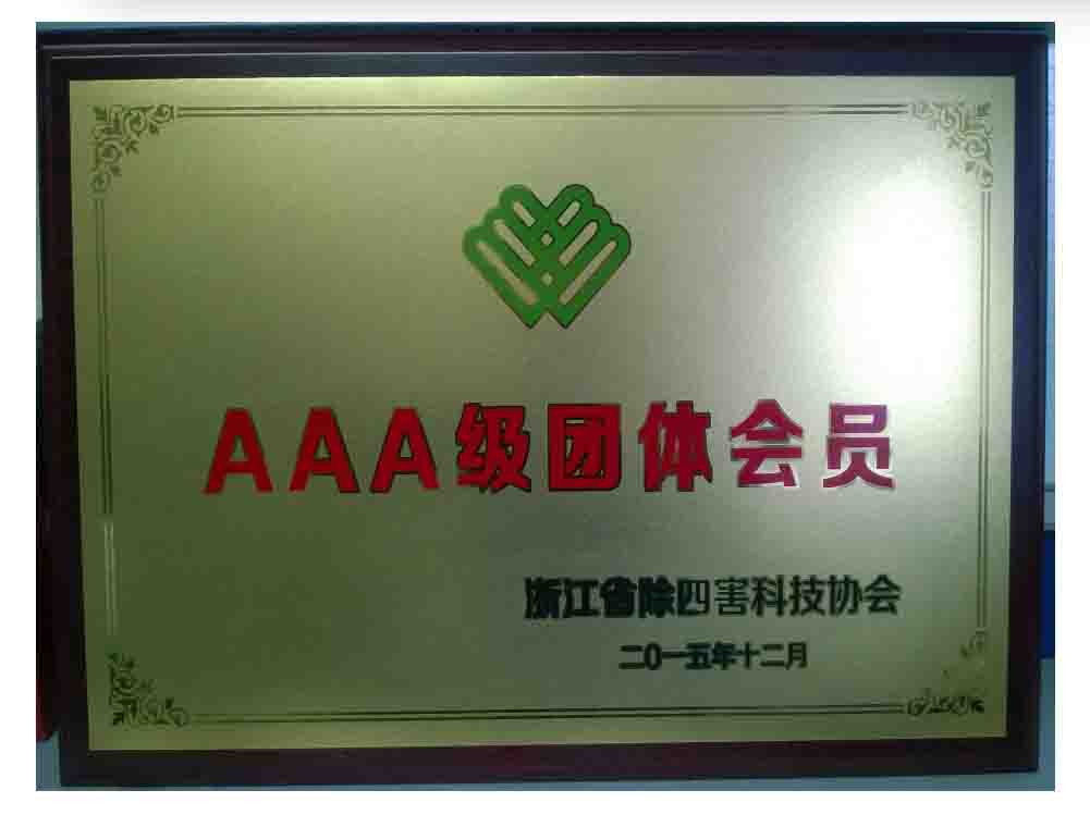 浙江省除四害科技協會AAA級資質銅牌