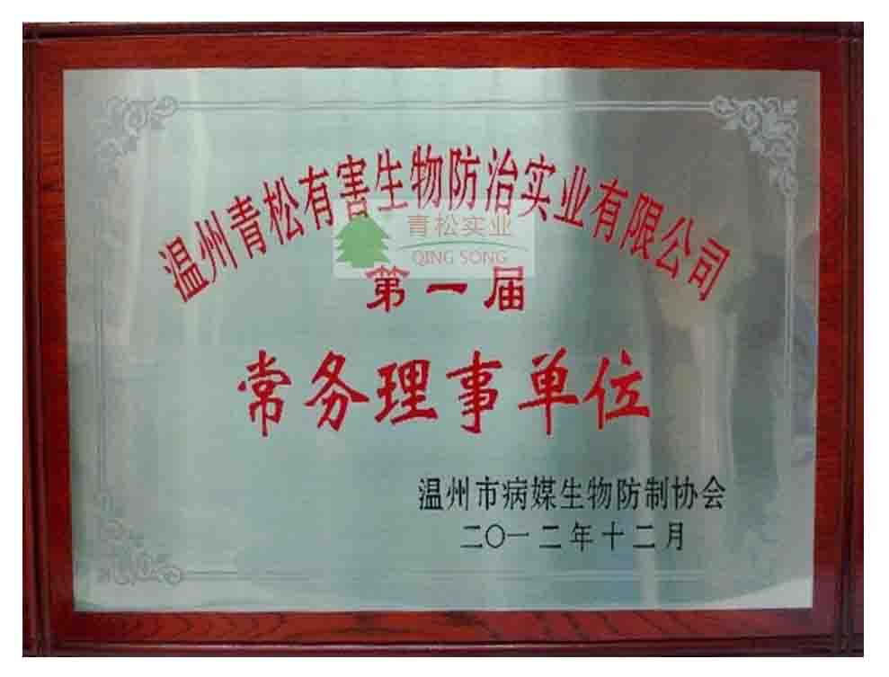 溫州市病媒生物防治協會常務理事單位資質銅牌