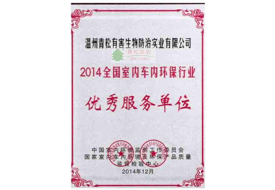 “全國室內車內環(huán)保行業(yè)優(yōu)秀服務單位”榮譽銅牌
